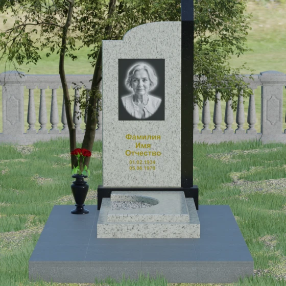 Широкое полотно основной стелы открывает безграничные возможности для художественного оформления. Форма идеально подходит для размещения крупного портрета в технике гравировки с мягкой растушевкой («ореолом»), что создает эффект живого взгляда. Золоченая кириллица имен и дат особенно выразительно смотрится на темном фоне, придавая мемориалу статусность и торжественность. Для того чтобы отразить индивидуальность и характер ушедшего человека, данная модель доступна в 8 цветовых решениях. Вы можете выбрать классический черный гранит Габбро-диабаз, благородный серо-белый Мансуровский гранит, насыщенный красный Лезниковский или глубокий коричневый Дымовский. Также доступны экзотические варианты: лесной Балтик грин, искрящийся Блю Перл, контрастный амфиболит или сияющий белизной мрамор Тассо. Комбинирование двух видов камня позволяет создать уникальный контраст фактур и оттенков, подчеркивая архитектурную сложность изделия.