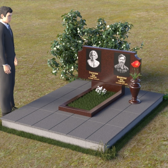 Оформление: Для этой формы стелы идеально подойдет гравировка портретов в овальной или прямоугольной рамке. Имена и даты жизни можно расположить под портретами, используя золотой или серебряный шрифт. Дополнительно можно добавить эпитафию, выражающую любовь и скорбь. Не перегружайте композицию лишними деталями – лаконичность и сдержанность подчеркнут достоинство и элегантность памятника.