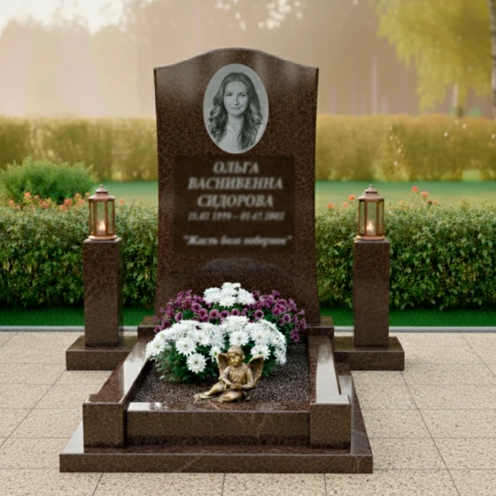 Представленный мемориальный комплекс выполнен из высококачественного гранита — материала, который по праву считается эталоном прочности и долговечности. Гранит обладает уникальной плотностью, что обеспечивает его исключительную устойчивость к любым погодным условиям, будь то суровые морозы, палящее солнце или проливные дожди. Его низкая пористость гарантирует, что камень не будет впитывать влагу и разрушаться со временем, сохраняя свой первозданный вид на протяжении веков. Зеркальная полировка поверхности не только придает граниту благородный блеск, но и защищает его от внешних воздействий, делая уход за памятником минимальным. Этот материал не требует особого ухода, достаточно периодически протирать его влажной тканью, чтобы сохранить его безупречный вид. Выбирая гранит, вы выбираете вечность, гарантируя, что память о близком человеке будет увековечена в камне, который не подвластен времени.