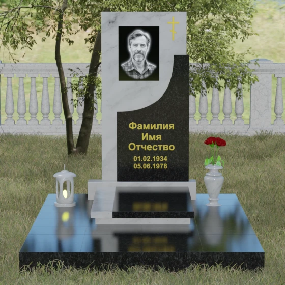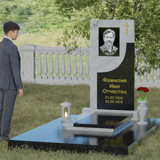 Модель Артикул 024 представляет собой законченное архитектурное решение. Стела установлена на массивный гранитный цоколь, который служит надежным фундаментом и придает всей конструкции необходимую устойчивость. Важной особенностью данного проекта является полное мощение участка: вместо открытого грунта используется сплошная надгробная плита. Это не только создает эстетически безупречный, аккуратный вид, но и значительно упрощает уход за местом захоронения, избавляя от необходимости борьбы с сорняками. В едином стиле с основным монументом выполнены дополнительные элементы декора: изящная каменная ваза, установленная на плите, позволяет приносить живые цветы, сохраняя гармонию композиции. Каменный бордюр по периметру участка четко очерчивает границы мемориала, превращая его в уединенное место для тихой молитвы и воспоминаний.