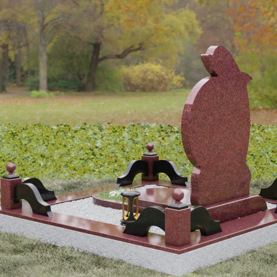Конструкция памятника продумана до мелочей и включает в себя полное благоустройство участка. Основание мемориала установлено на прочный каменный цоколь, обеспечивающий идеальную геометрию и устойчивость всей композиции. Периметр участка обрамлен низким бордюром из полированного камня, который визуально выделяет сакральное пространство. Вместо традиционного открытого грунта используется сплошная надгробная плита — это не только придает комплексу завершенный и аккуратный вид в европейском стиле, но и значительно упрощает поддержание чистоты.