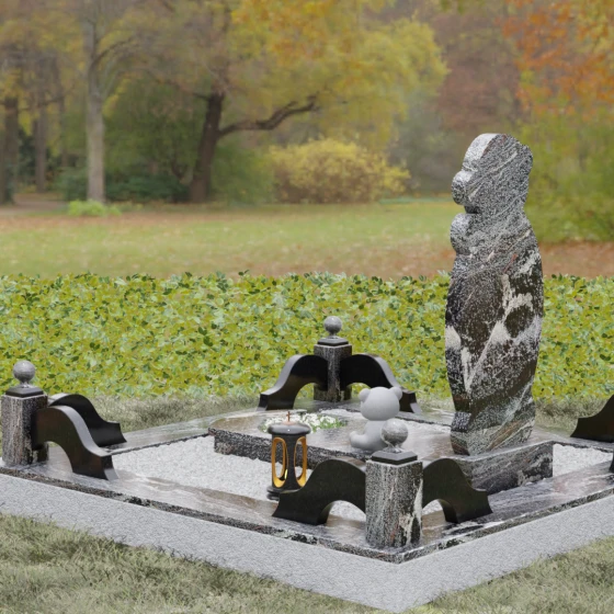 Для реализации этой идеи мы предлагаем выбор из 8 изысканных цветовых решений. В зависимости от желаемого настроения, вы можете выбрать один из семи видов гранита: строгий Габбро-диабаз, благородный Дымовский, контрастный Амфиболит, нежный Мансуровский, величественный Лезниковский, глубокий Baltic Green или мерцающий Blue Pearl. Также доступно исполнение из белоснежного мрамора Тассо. Такое многообразие позволяет подобрать камень, который будет максимально точно отражать характер и внутренний мир близкого человека, создавая по-настоящему персонализированный облик мемориала.