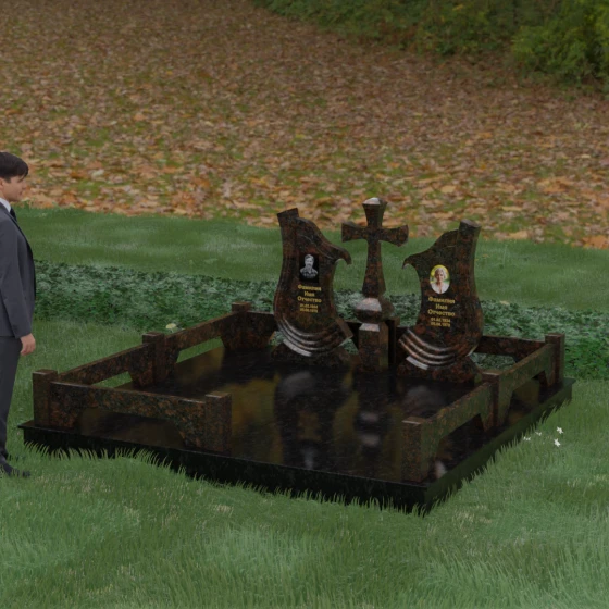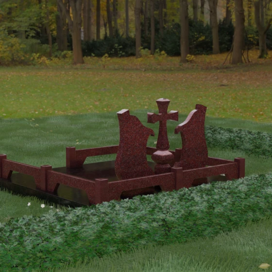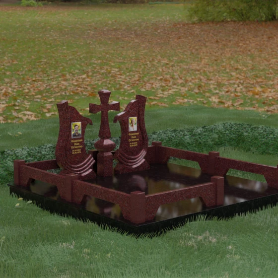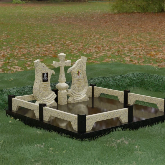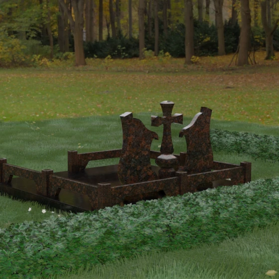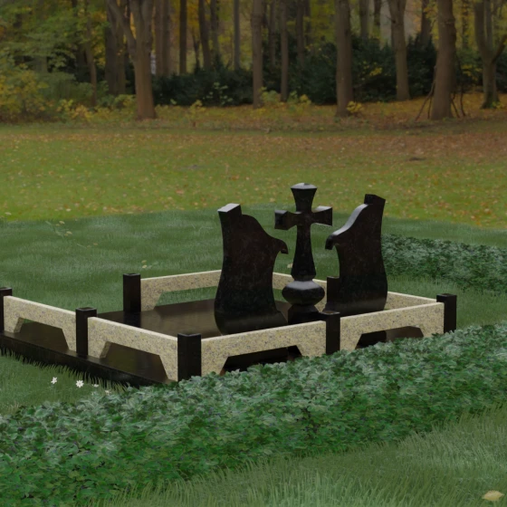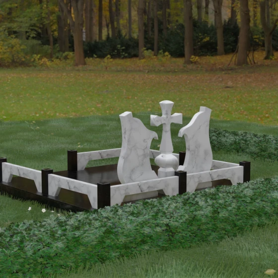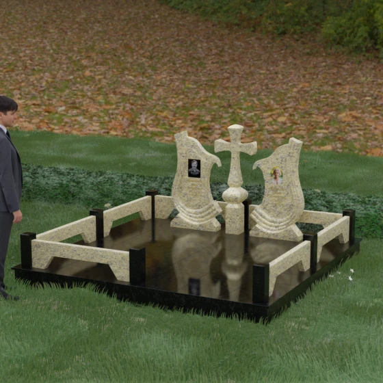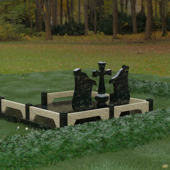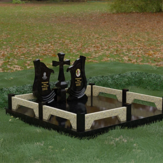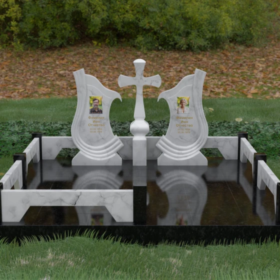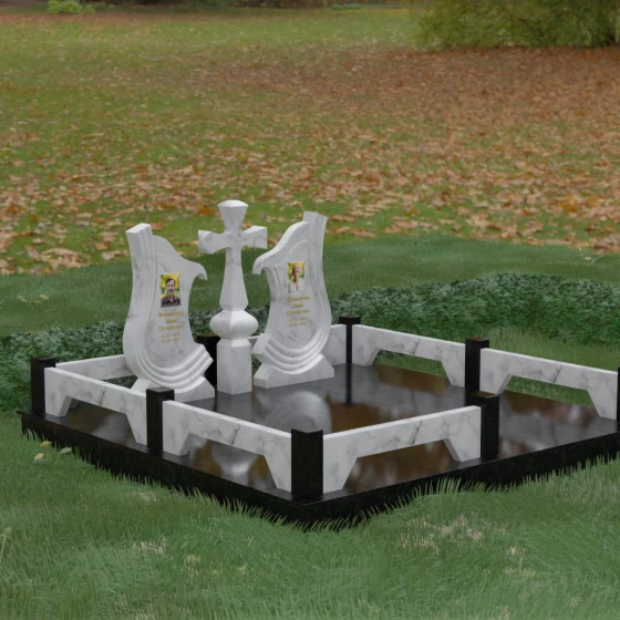 Кому подойдет: Данный проект является идеальным выбором для оформления семейного захоронения (для двух человек). Благодаря сочетанию строгих канонических элементов и современных плавных линий, он подходит как для почитания памяти родителей, так и для супружеской пары. Это решение для тех, кто ценит архитектурную целостность и желает создать величественный символ вечной любви и единства, который будет выглядеть неизменно достойно спустя века.