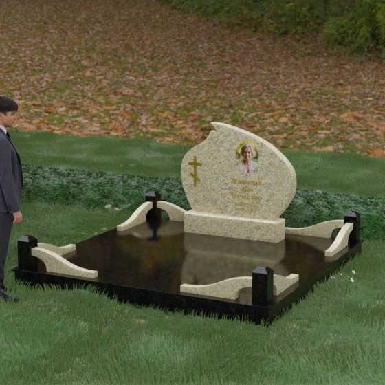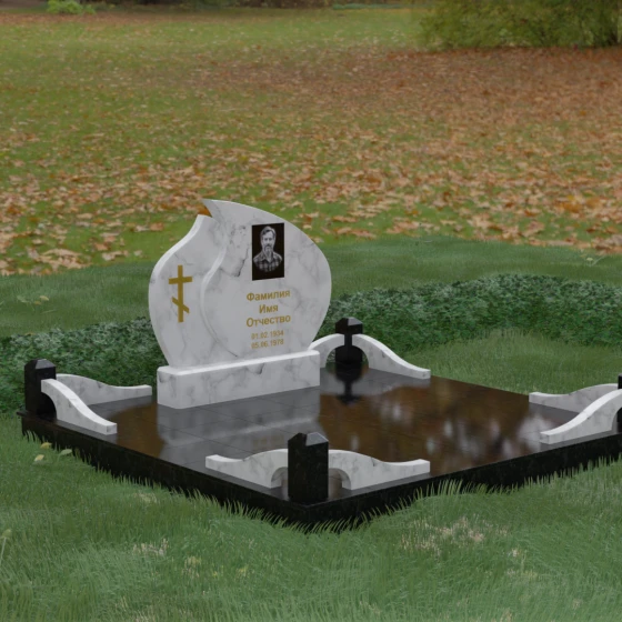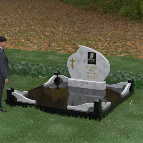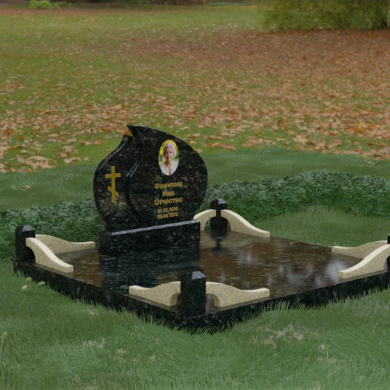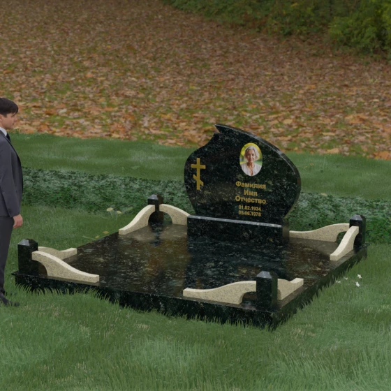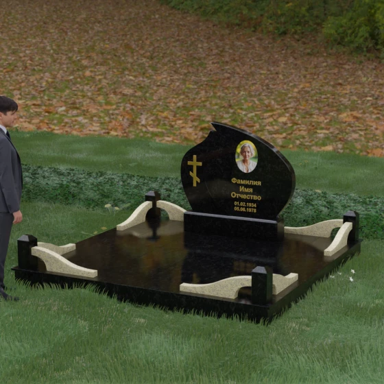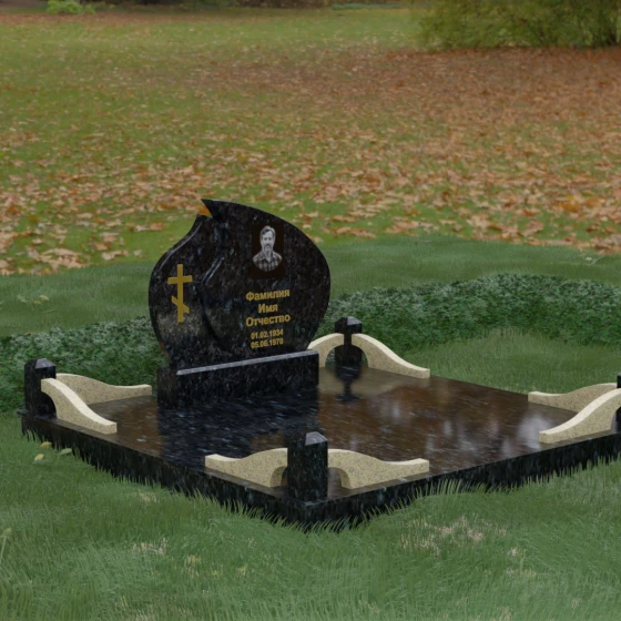 Кому подойдет: Данная модель является универсальным решением, которое за счет своей формы и возможности комбинирования цветов подойдет как для женского, так и для мужского захоронения. Монумент идеально воплощает в себе черты семейного мемориала, символизирующего достоинство и преемственность поколений. Мы предлагаем исполнение этого комплекса в 8 цветовых решениях, что позволяет индивидуализировать проект под характер близкого человека. Вы можете выбрать классический черный гранит Габбро-диабаз, благородный Дымовский, изысканный Блю Перл, насыщенный Лезниковский, строгий Балтик грин, текстурный Амфиболит, светлый Мансуровский гранит или белоснежный мрамор Тассо. Использование разных пород камня в деталях стелы и ограждения позволяет создать по-настоящему эксклюзивный памятник, который станет достойным воплощением вашей любви и почтения.